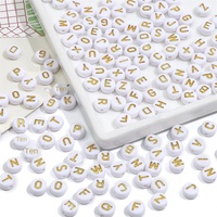 50pcs/bag 26 Alphabet Beads 4*7mm Flat Round Beads White Beads with Gold Letter Acrylic Beads for DIY Early Education Jewelry