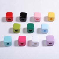 50ピース/バッグ10mmカラフルシュガースクエアビーズソリッドカラーアクリルスクエアビーズDIYクラフトタッセルビーズ付き